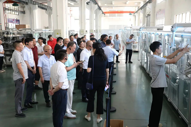 會(huì)議期間,與會(huì)人員走進(jìn)希望公司,實(shí)地考察全自動(dòng)泡罩裝盒一體機(jī)運(yùn)行情況。